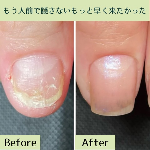 最初は「本当に変わるのかな?」という、半信半疑な気持ちもありました。ですが 1週間で爪は変わり始め、更にホームケアもすればするほどどんどん爪が変わっていきました。また、奥園さんが毎回色んな話をしてくださったので、楽しく通わせていただきました!